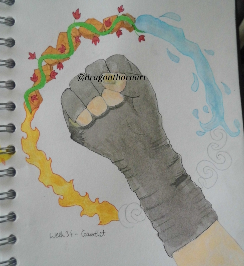 Week 34 of Inktober 52 - Gauntlet. #inktober #inktober52 #inktober2020 #gauntlet #elements #fire #earth #water #air #inkart #inkdrawing