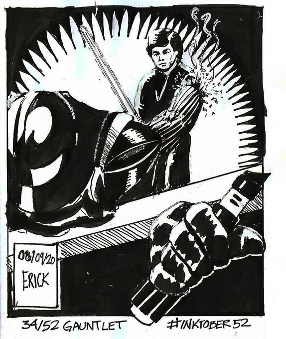 Inktober52, proposta 34, manopla Pra que eu fui inventar de parar de desenhar vei Instagram:instagram.com/p/CEMvwU8AFlE/… #Inktober #inktober52 #gauntlet #ArtistOnTwitter #fanart