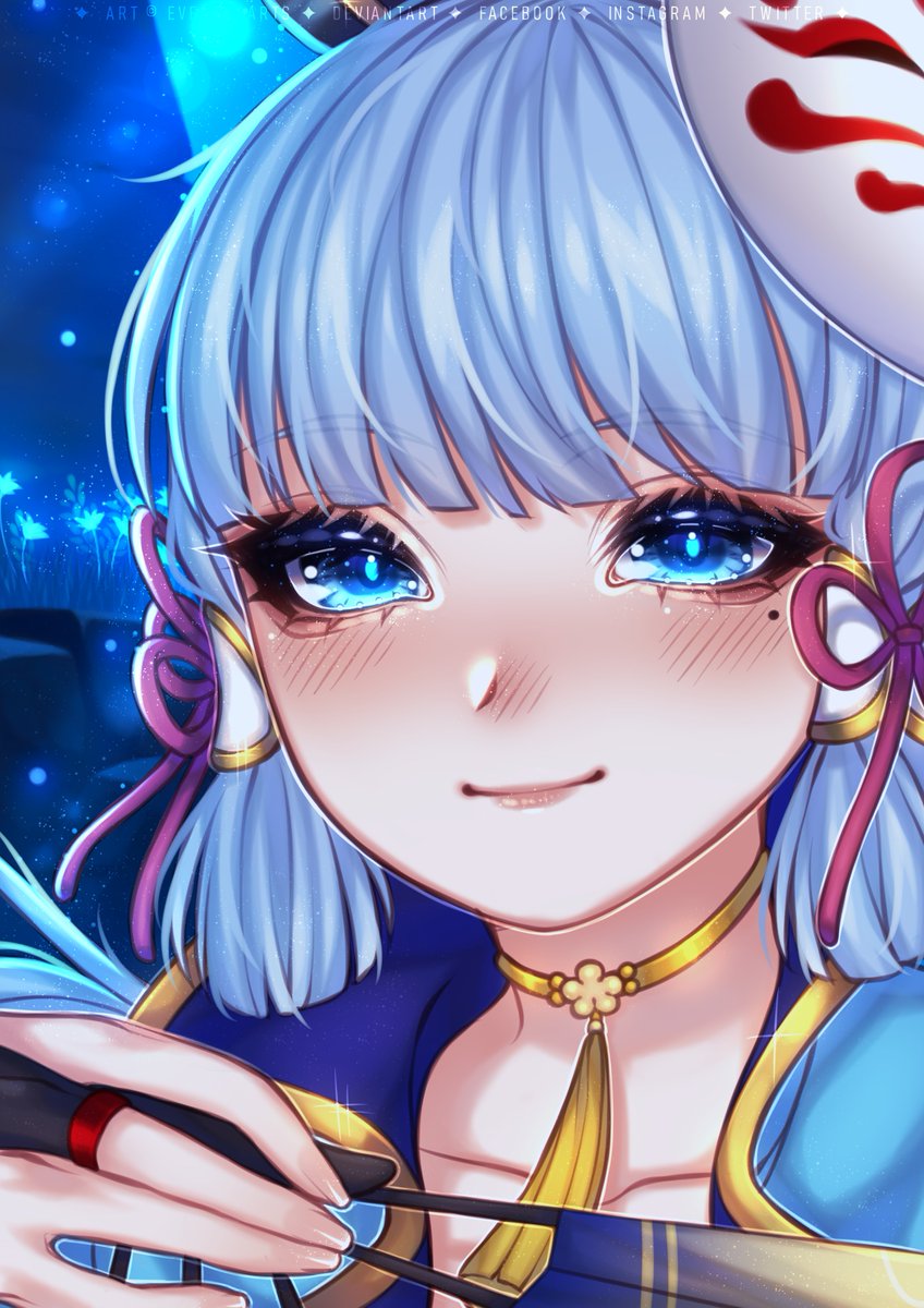 Dia 23 - #AYAKA Gostei de fazer esse fundinho, to bem orgulhosa dele, apesar de n ser o foco do desenho 🥺💙 #genshintober #GenshinImpact #原神