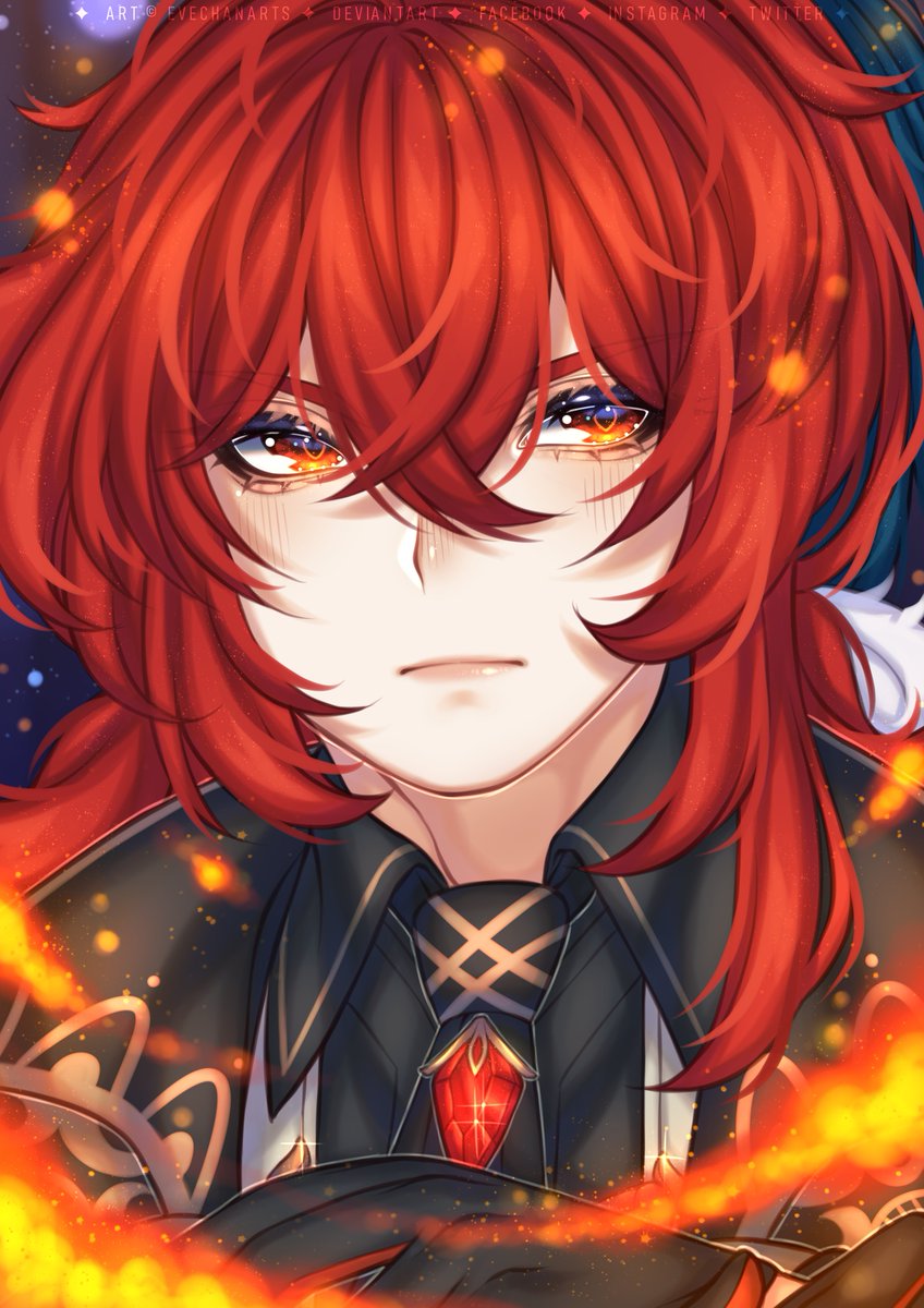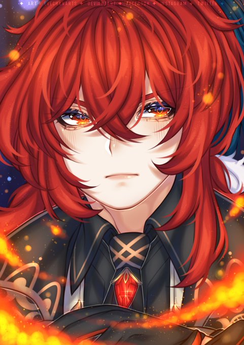 Dia 27 - #Diluc To rino? (Amo esses irmãos e quem falar que é shipp vou dar uma tamancada) #genshintober #GenshinImpact #原神