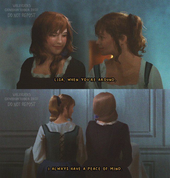 #genshintober2021 Day 19 - fav ship: JeanLisa (As Marianne and Héloïse from Portrait of a Lady on Fire) #GenshinImpact #jeangunnhildr #lisaminci #jeanlisa