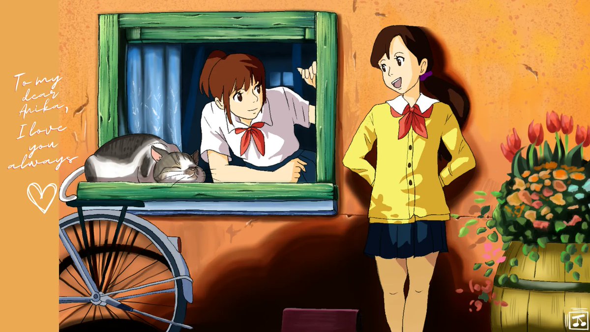 Here's the finished product for my dear friend's birthday! I wanted to make it look like a postcard or something. TwT 🍒 Lmk if you guys would want stuff like this for commissions in the future! #ghibliredraw #ghibliart #digitalart #artph #artmoot #art