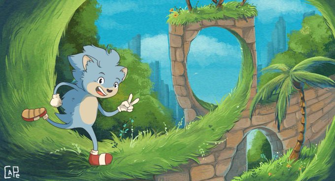 Had a good time with @BlueBandanaJake and company doing the monthly style challenge. This month's chosen character was Sonic, so I present to you... Sonic Studio in Ghibli Style! #SonicTheHedeghog #sonicfanart #ghibliart