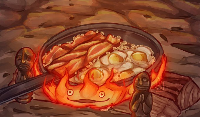 ✧˖° Calcifier (e 🍳🥓) no meu estilo! 🔥ˎˊ˗ [#ghibliredraw #ghibliart #studioghibli #HowlsMovingCastle]