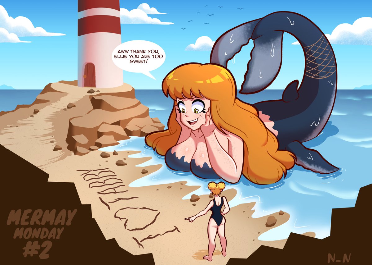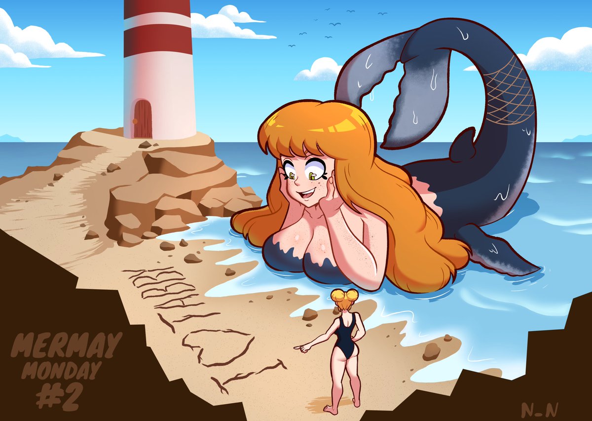 Mermay Monday #2 featuring @mango_away lovey OCs, Tabby as a BIG humpback mermaid, and Eille having fun at the beach. Have a good Monday, everyone! #mermay #mermay2022 #whaletail #ginger #cute #beach #digitalart #mermaymonday2022 #fanart
