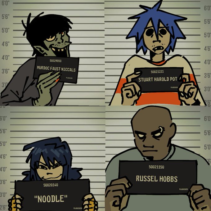 Reverse #Gorillaz au be upon you 🎸✨ #RusselHobbs #MurdocNiccals #StuartPot #NoodleGorillaz #DeltheGhostRapper