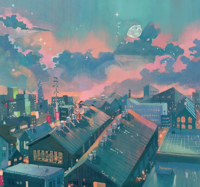 "One step into air I thought I was about to fly" #gouachepaint #gouacheart #originalcharacter #illustration #イラスト #撒野