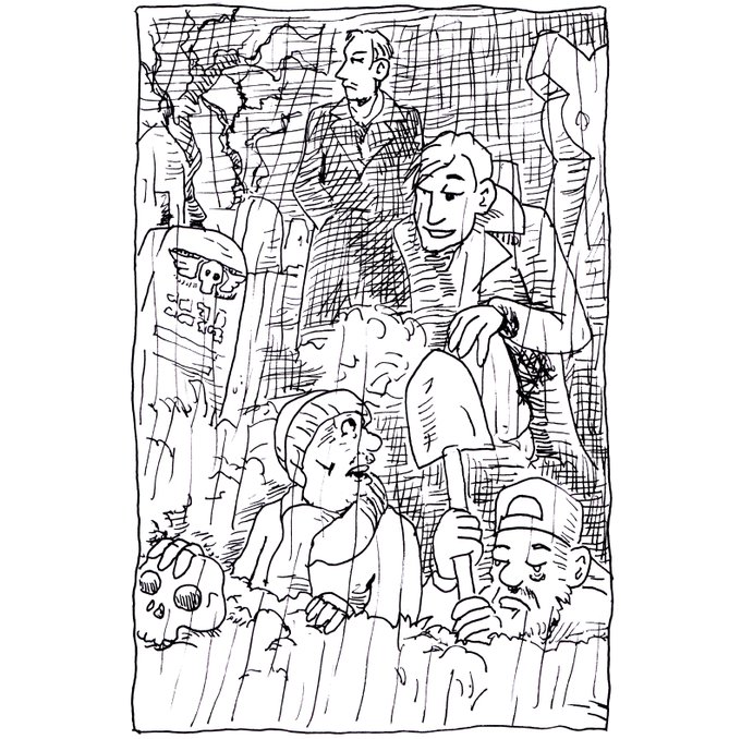 Inktober 2020- Day Twenty-Three - #Dig @Jakeparker @inktober #inktober #inktober2020 #Halloween #sketch #penandink #sketch #sketching #halloween #Hamlet #horatio #Shakespeare #graveyard #gravedigger #clowns #guildinktober #seattleillustrator #seattlecartoonist