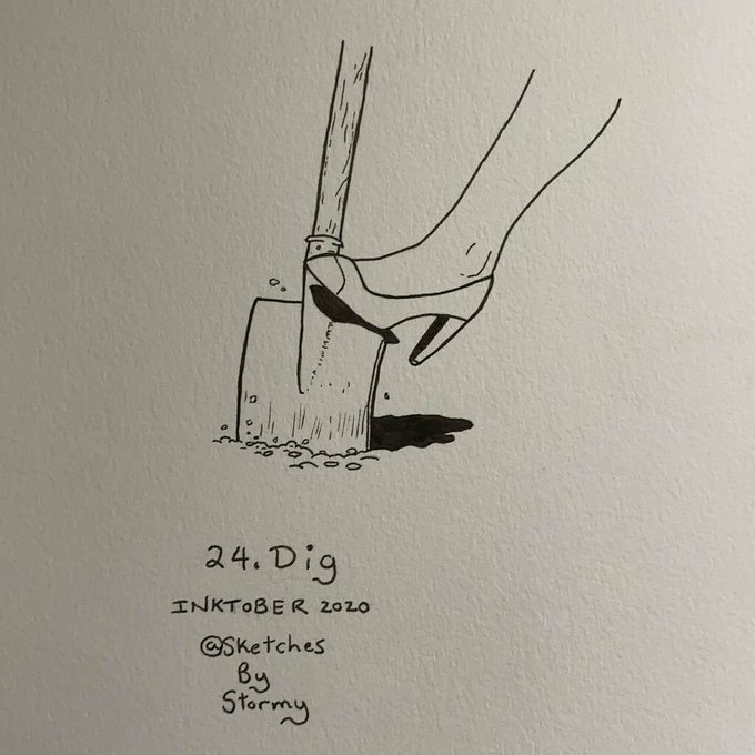 Inktober 2020, Day 24: "Dig." (Day 1485) #inktober #inktober2020 #dig #tombow #watercolor #black #brushtip #grave #graveyard #graveyardhumor #cemetery #gravedigger #pleasemrgravedigger #adrawingaday @inktober @jakeparker