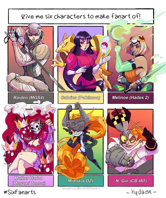 this took sooooo long but here we go! thank you to everyone who made requests! #SixFanarts #Pokemon #Hades2 #MGS #CrashBandicoot #LegendofZelda