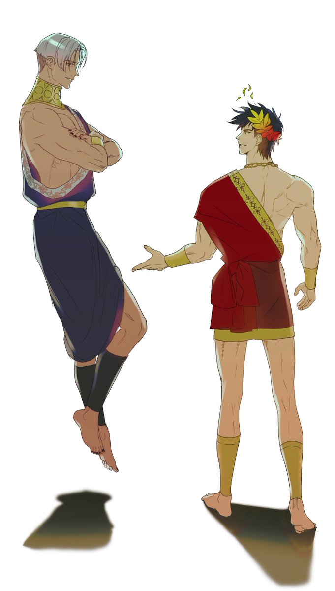 シシン先生と歩くHADESゲームさんぽ内で言及のあった、シシュポスに騙されたタナトスのストーリーが忘れられなくて描いた。 タナトスがあまりにもぽんこつかわいすぎる・・・(尚この後冥王も騙される模様) #HadesGame #hadesgamefanart
