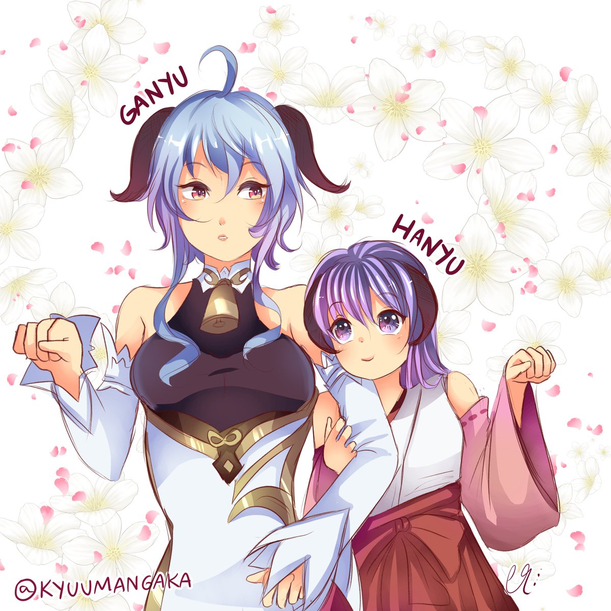 Eu não consigo pensar na Ganyu sem pensar na Hanyu, então eu fiz um desenho delas juntas ❤️ #fanart #genshinimpactfanart #genshinimpact #genshin_impact #Ganyu #ganyugenshinimpact #Higurashinonakukoroni #higurashigou #higurashi #hanyu #kawaii #art