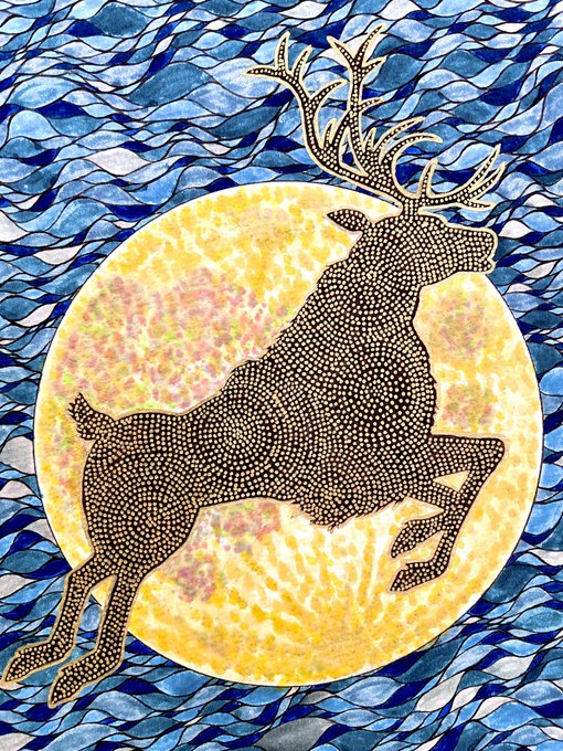 わくわく どきどき 心踊る 月夜の晩 #Christmas #Deer #happiness #Artist #drawing #IMAGINARYWORLD #pendrawing #アートのある暮らし #イラスト #デザイン #デザインアート #ペン画 #私の世界 #絵描き #想像の世界 #暮らしの中に彩りを #瞑想