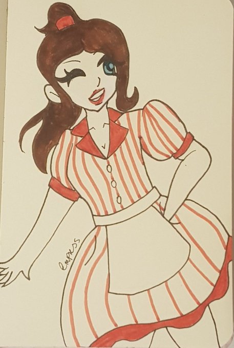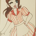 Day 29 of #cutegirltober2022! The theme is Vintage Diner! This didn't turn out the way I wanted it to, but I think that's because I'm not too familiar with this style :( ~~~~~~~♡~~~~~ #inktober #art #traditionalart #kawaii #cute #anime #harajuku #vintagediner #vintage #ukartist