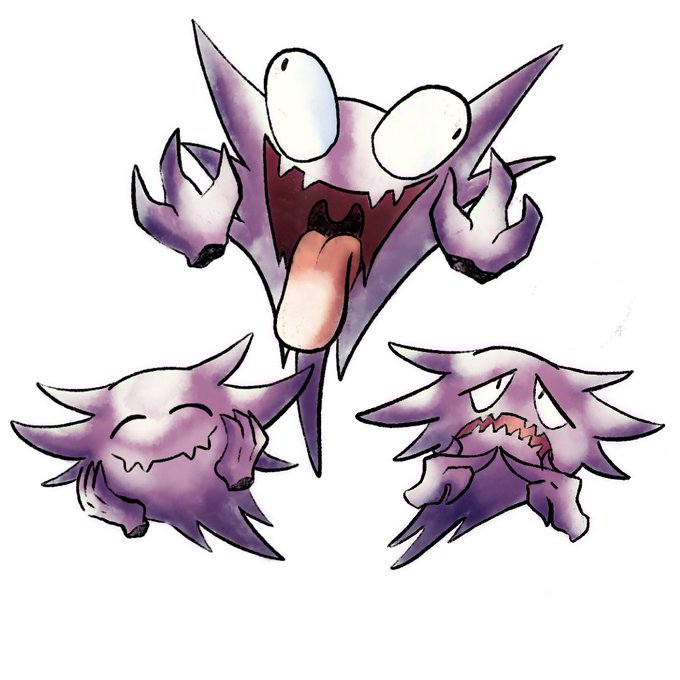 I'm a little late on this but here is my #drawthisinyourstyle drawing thing. #gengar #haunter and #gastly are some of my favorite #pokemon! #pokemonfanart #smallartist #procreate #ghostpokemon