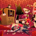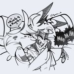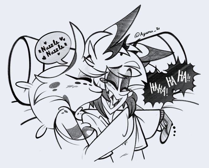 Another #RadioDust HC of mine: Alastor is touch-averse in part because he's ticklish & Angel just loves to take advantage of that when they cuddle. >w> #HazbinHotel #HazbinHotelFanart #RadioDustFanart