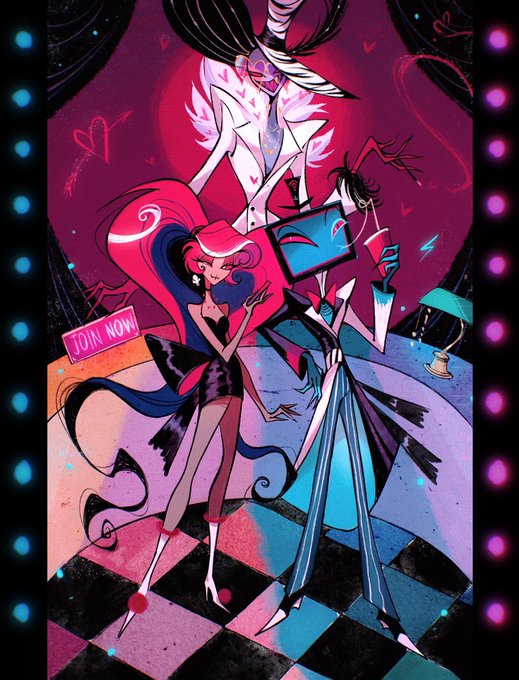 I love Vox's new smile But basically I love them no matter what, so... Have some nasty villains ❤️🦋📺❤️ #HazbinHotel #HazbinHotelFanart #HazbinHotelValentino #HazbinHotelVox #staticmoth