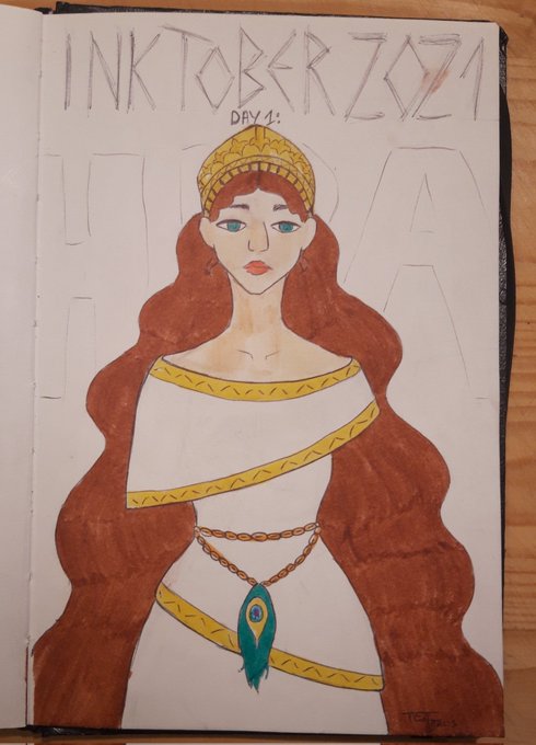 Jour 1, Héra. Aucun des grecs du système ne l'apprécie réellement, sauf Perséphone je crois. . . #inktober #inktober2021 #greekmythtober #mythtober #greekmythtober2021 #day1 #jour1 #hera #draw #drawing #artist