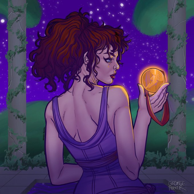 "it's the symbol of the gods" . I had so much fun #drawing this #Megara #illustration #fanart holding the symbol of #Hercules faith. . (pose reference miss.sugar.peach ) . . #art #digitalart #artwork #portrait #comissionsopen #comission #georgeparkerart #georgeparker #disney