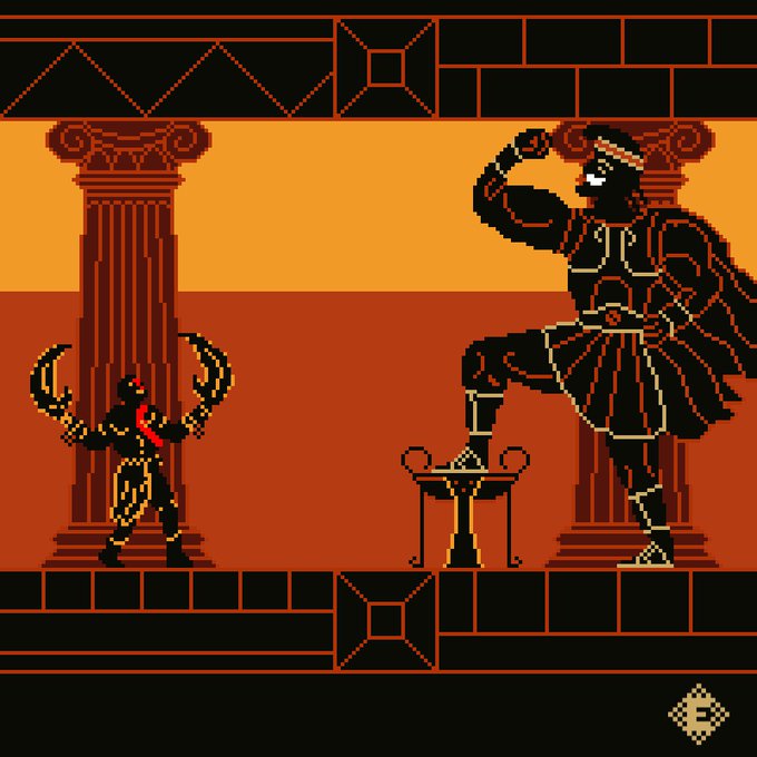 #pixeltober2022 Day 5- Mythology "Kratos vs Hercules" Canvas size: 200x200 Challenge by @PixelDanc3r #pixelart #aseprite #pixelartist #16bitart #8bitart #pixelartsociety #amatureartist #ドット絵 #픽셀아트 #pixeltober #GodofWar #Kratos #Hercules #mythology