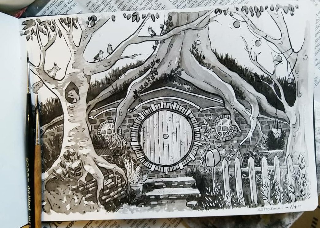 Little hobbit hole in a snow globe 😊😊 #inktober2017 #Inktober #lordoftherings #lotr #hobbits #hobbithole #theshire #hobbiton #sakura