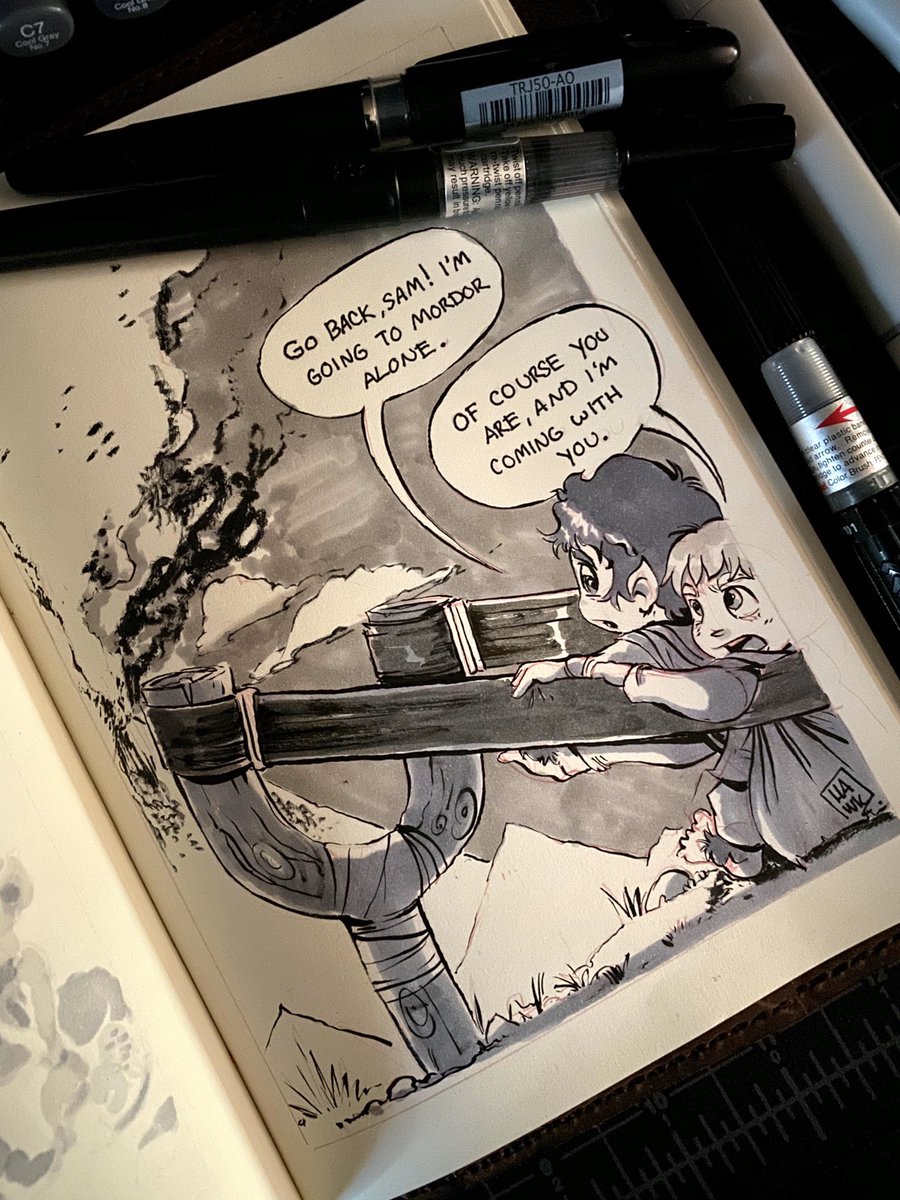 Inktober Day 19 - Sling i'm all about being efficient #inktober #inktober2019 #illustration #artwork #art #sketchbook #sketchbookdaily #dailyart #hobbits #lordoftherings #sam #frodo #sling