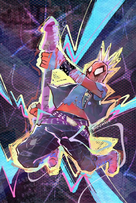 Trying something different!!🕸️🎸 #AcrossTheSpiderVerse #HobieBrown #hobiebrownfanart #SpiderVerse #Spiderpunk #art #artidn
