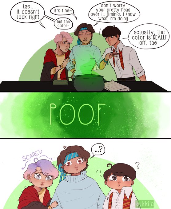 in which namjoon goes to a new level of existence, yoongi is ready to fight and the maknae line misses their hyungs :( ✨ potion fail pt.2 ✨ #BTS #hogwartsau #btsfanart