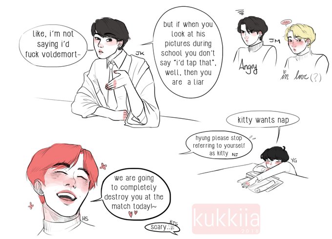 AU in which hogwarts is a university, not a high school, they all have too much time in their hands and yoongi is a whole little meow meow #bts #hogwartsau #btsfanart