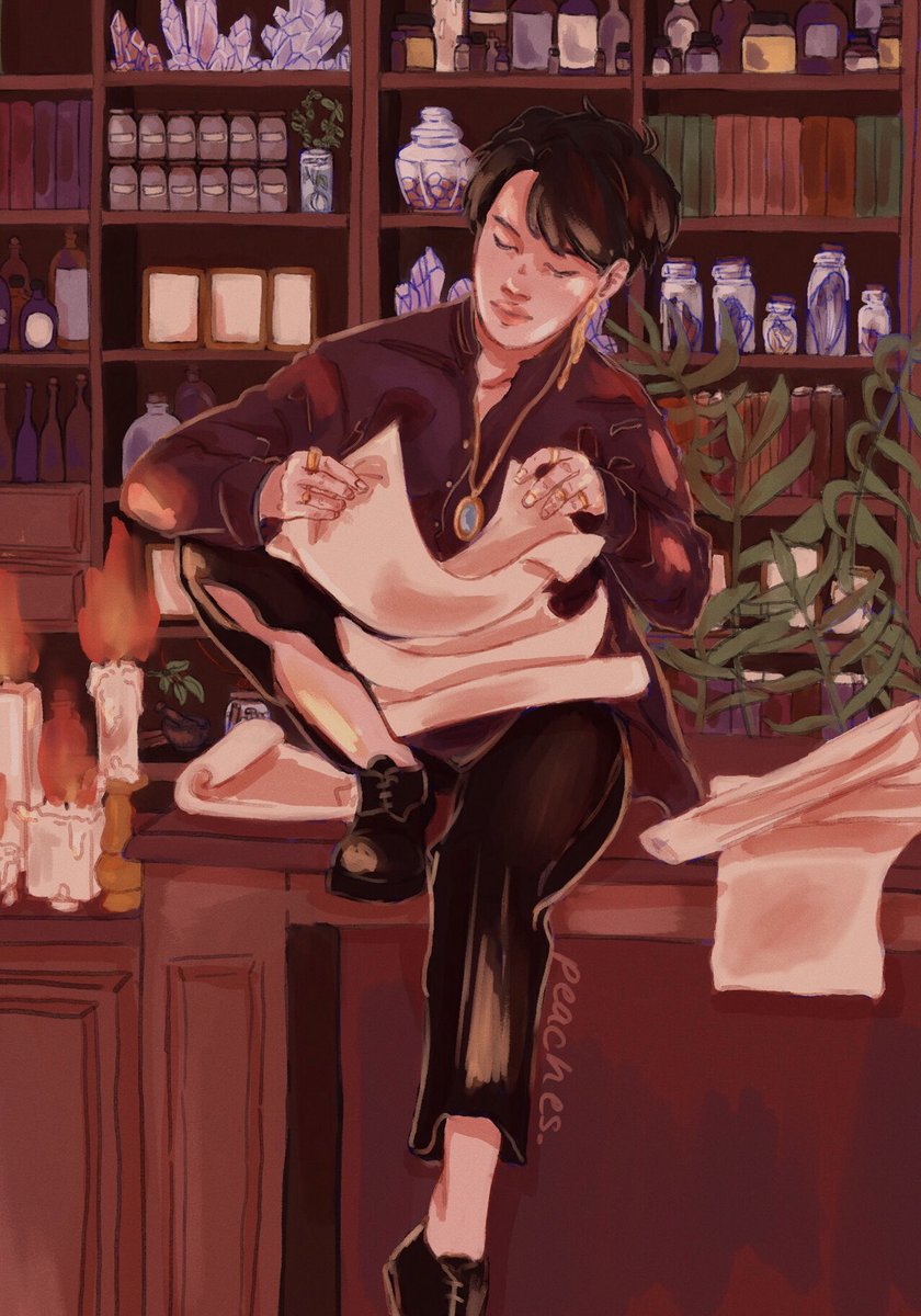 late night reading at the witch shop (mayhaps part of my #hogwartsau ? ) #btsfanart #jimin #jiminart
