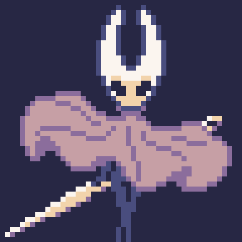 Hornet Character from games Hollow Knight and Hollow Knight: Silksong. — @PixelHomies weekly prompt: #insects, 48x48px, palette #oil6 — #pixelhomiesinsects #pixelart #ドット絵 #aseprite @TeamCherryGames #Hornet #HollowKnightSilksong #HollowKnight #fromreference