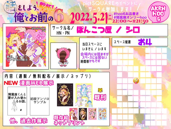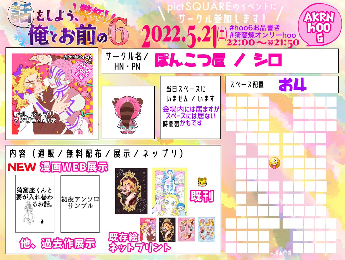 #猗窩煉オンリーhoo #hoo6お品書き とりあえず…とりあえず…まだ全然準備中だけど…間に合えば😇 展示漫画は初夜アンソロをちょみっと公開しよかなってのと新規漫画はこういう設定で今度描きたいなっていう設定の説明マンガみたいななんかそんなやつ(雑)サンプル添付しますのでお時間あればぜひ🤤