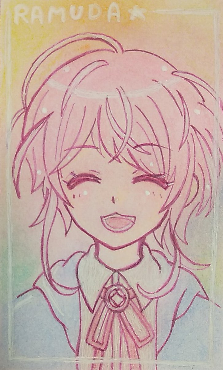 前の乱数ちゃんの落描き、ちゃんと色付けて完成した(^^) 初めてパステルで全色塗りしてみた♪ やっぱパステル可愛いなぁ(∩´∀`∩)♪ #hpmi #イラスト #アナログ #イラスト好きさんと繋がりたい #アナログ絵描きさんと繋がりたい