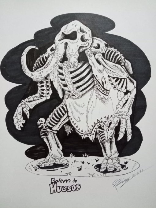 Dia 10 Huesos (atrasado), este golem de huesos te de destruirte, te usara como material para seguir creciendo. @LeyendasPodcast #TintubreLegendario2022 #TintubreLegendario #LeyendasLegendaria #huesos #golem #dungeonsanddragons #Inktober #dibujo