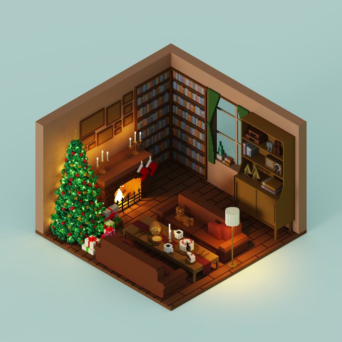 A hygge Christmas room 🎄💫 Lounge back as you enjoy Christmas anytime you want. rarible.com/sumivoxel/sale #voxelart #voxel #voxels #christmas #hygge #magicavoxel #ボクセルアート
