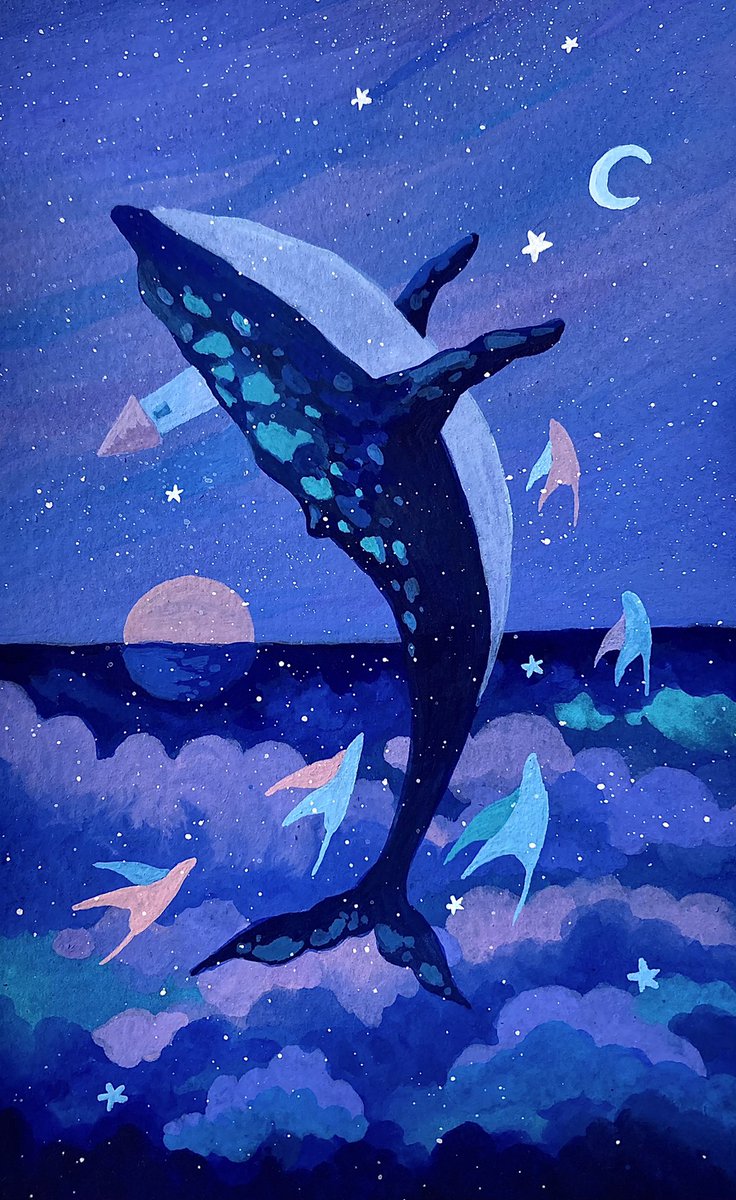 自由に空を飛ぶクジラ エイ鳥たちと一緒に遊びます🐋 体調不良なので、更新が遅れてしまい申し訳ございません🙏 #illusrtationart #art #whale #artwork #illustlation #絵描き #クジラ #絵描きさんとつながりたい #芸術 #芸術同盟 #絵画 #芸術の輪 #イラスト