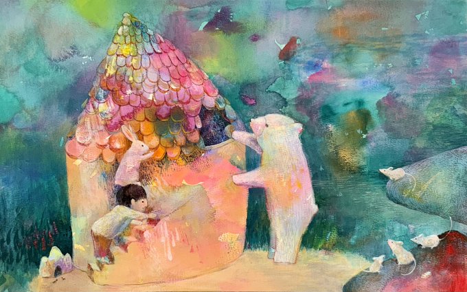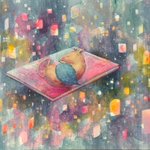海の中に夢を見るネコちゃん 小さな星が海に落ちる 積もり積もってカラフルな海になりました 月を抱く子猫ちゃん いい夢を見たはずです♪ #illusrtationart #artworks #illustraion #ネコ #絵描きさんと繋がりたい #イラスト #絵本 #絵画 #芸術同盟 #アート