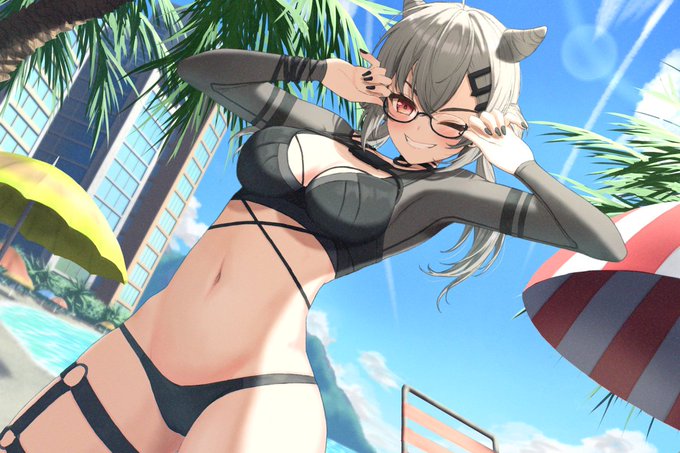 I drew the streaming screens for @Saruei_! Your new outfit is so sexy... Saruei先生の配信待機画面イラストを描かせて頂きました! 水着姿の色気がすごい...😭 #illustruei