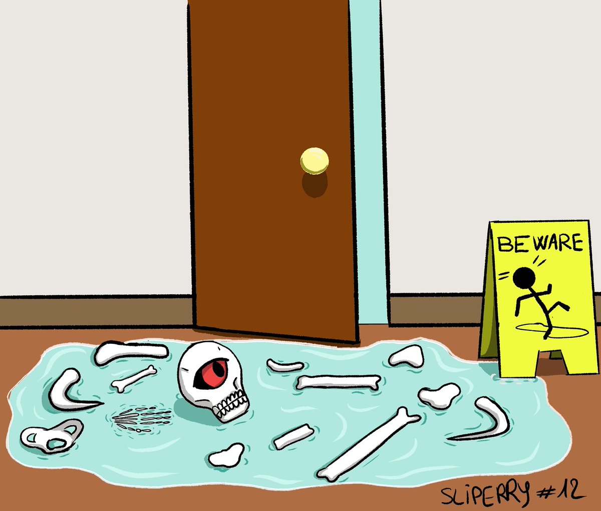 12 : Slippery! This skeleton seems a little bit angry no? Just me? Sorry little skeleton! 😅😁 #skeleton #art #artwork #Halloween #monster #artist #inktober #inktober2020 #draw #digitalart #creation #creature #imaginary