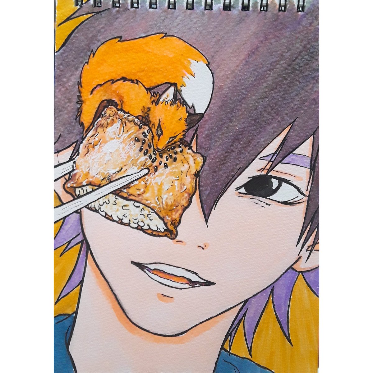I really love how my fox came out here ^^ I think I may make my foxes look more like this in #Kitsunecurse Anyway, this is my #inktober, this prompt was #inarizushi #kitsune #fox #inkart #penart #Inktober2019 #inktober2019day5