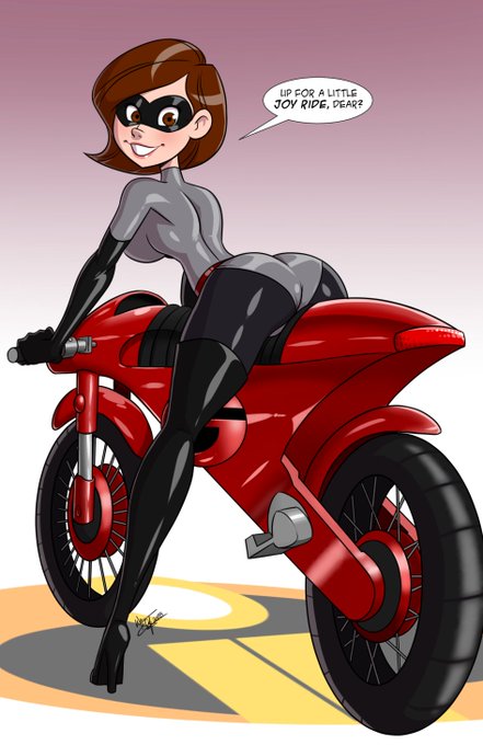 Elastigirl offers up a chance to ride her...brand new, bike! Happy Mother's Day! #Incredibles2 #Elastigirl #pinup #cutiesaturday