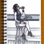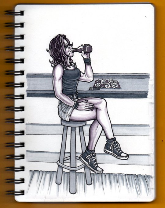 DAY 4 - #SCALLOP Carla enjoying some scallops during a sunny day. I wasn't sure how to relate my OCs to a scallop so this will have to do. #Inktober2022 #Drawtober #ArtChallenge #Arttober #OCArt #OCDrawing #OC #Inktober #OCstober2022 #InktoberScallop #InktoberDay4