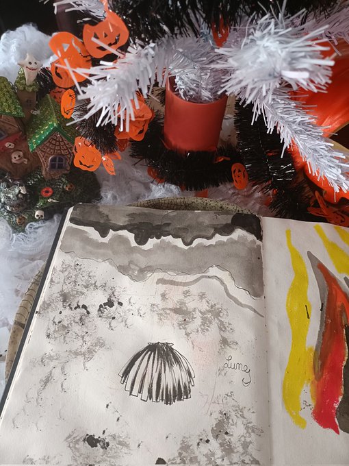 Some process photos. No video process for this one because I lost the footage 🥲 #processpicture #illustationprocess #inktoberscallop #inktober2022