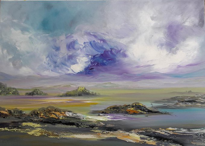 Above the Clouds: Oil on cradled wood panel, 60 x 80cm, available via DM or artachart.com #oilpainting #landscape #abtractartist #Ireland #artistontwitter