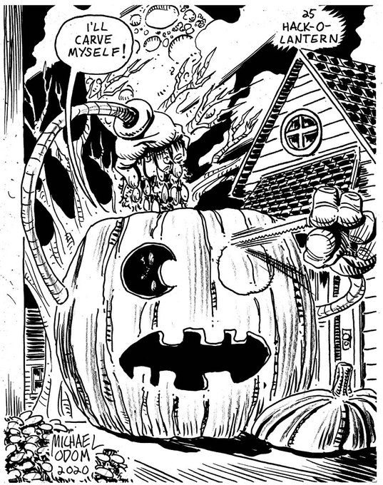 Ghosts of #Drawlloween #Inktober past. 2020's Hack-O-Lantern. #halloween #halloween2022 #pumpkin #jackolantern #pumpkincarving #carving