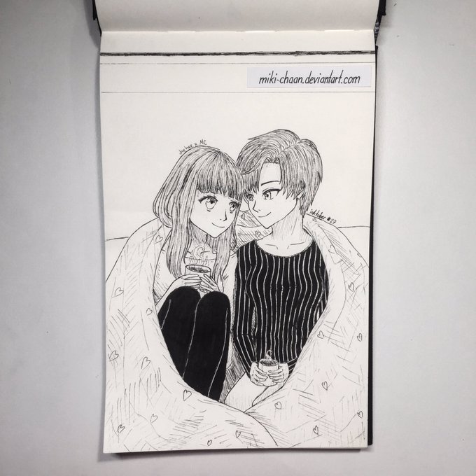 Jaehee and mc drinking coffee together ♥︎ #inktober #inktober2016 #inktoberday27 #jaehee #mc #jaeheexmc #drinkingcoffee #mysticmessenger