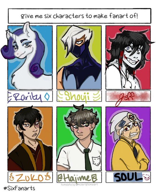Did the #SixFanarts on my instagram!! @//cockgane #SixFanartsChallenge #Rarity #MLP #shoji #MHA #JeffTheKiller #creepypasta #Zuko #TheLastAirbender #Hajime #danganronpa #SOUL #souleater #fanart