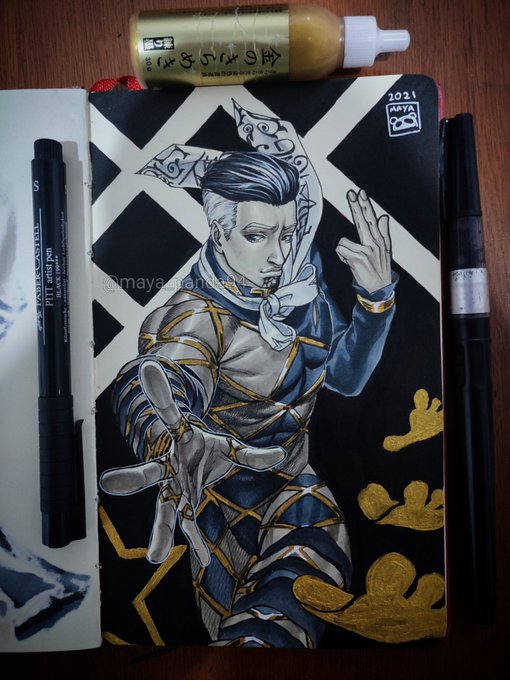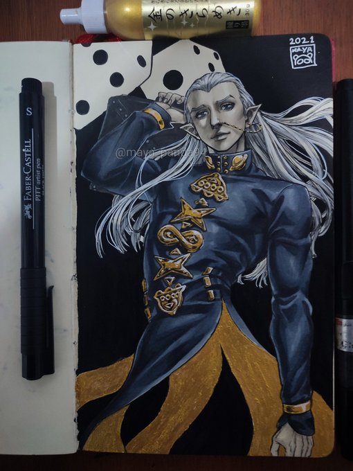 #jojotober2021 Day 16 #anjurokatagiri And his stand #aquanecklace . Man.... I hate him so much. Draw him take too much time because of that (´-`)
