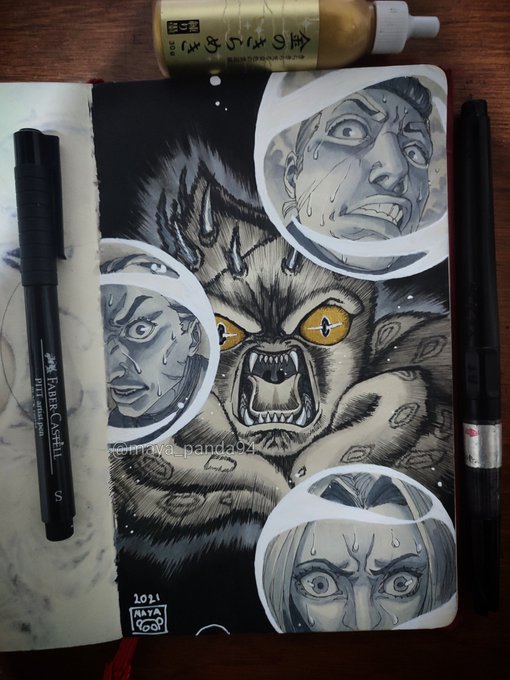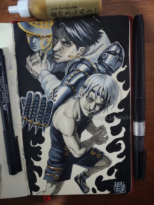 #jojotober2021 Day 16 #anjurokatagiri And his stand #aquanecklace . Man.... I hate him so much. Draw him take too much time because of that (´-`)