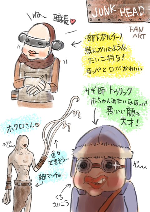 届いたあああ!!ありがとうーーーー!! さんばか様ーーー🙌🙌🙌 お礼としてはひっどい #ファンアート ですが…… 気持ちだけは込めております。 絵を描くこと苦手です😑頑張りました🥹 せめてものお礼に…YAMIKENスタッフの皆様、沼ファンの方々にご報告と感謝をこめて🤍 #JUNKHEAD #JUNKHEAD沼民
